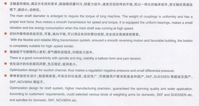 ·優(yōu)化的鋼領(lǐng)板升降控制程序與集體落紗完美結(jié)合,使機(jī)臺的再起紗留頭率在97%以上。