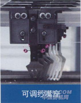 2.自主研發(fā)的可調(diào)添紗導(dǎo)紗器專門運用于編織添紗組織,16把紗嘴,將添紗技術(shù)和其他結(jié)構(gòu)相結(jié)合就能形成顏色和結(jié)構(gòu)豐富多彩的效果。