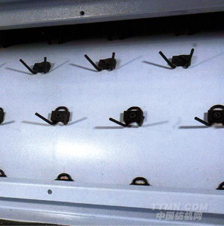 采用大直徑變頻驅動螺旋狀排列的彈簧角釘將原材料開松,(如圖所示)使筵棉僅僅經過