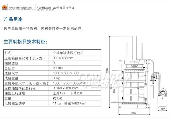 您所在的位置:紡機(jī)網(wǎng) > 產(chǎn)品庫 > YD/HD501-20型液壓打包機(jī)