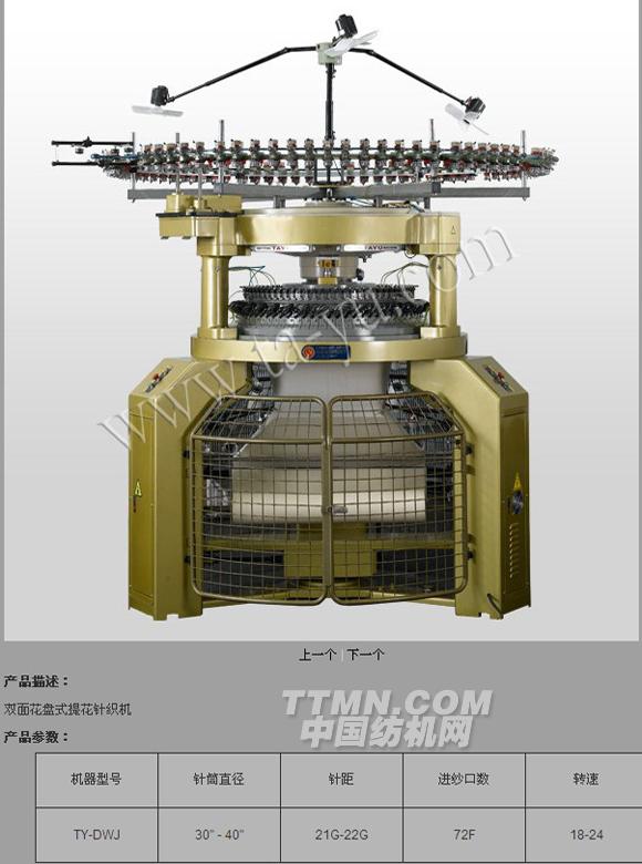 您所在的位置:紡機(jī)網(wǎng) > 產(chǎn)品庫 > 雙面花盤式提花針織機(jī)TY-DWJ