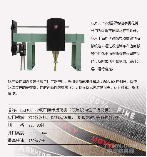名稱:HEJ160-72絨布商標(biāo)提花機(jī)(雙層織物邊字提花機(jī))