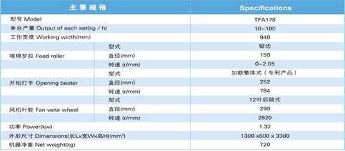 本機(jī)是梳棉機(jī)與清花機(jī)組之間的連接裝置。采用上下棉箱結(jié)構(gòu),整體剛性好,精度,密封性好。在配棉總管中,設(shè)有壓力傳感器,保證了上棉箱內(nèi)棉花密度均勻。下棉箱采用風(fēng)機(jī)和通過靜壓擴(kuò)散而裓-環(huán)吹氣,使整個(gè)機(jī)副內(nèi)下棉箱壓力均勻。采用進(jìn)口壓力傳感器,根據(jù)下棉箱壓力來控制上棉箱給棉羅繺-速度,保證了下棉箱壓力更穩(wěn)定。采用順向喂棉、彈性握持。采用螺旋排列加筋整體式梳針打手(國(guó)家專利產(chǎn)品),纖維無損傷,主機(jī)采用全中文觸摸屏PLC程序控制器智能控制,操作簡(jiǎn)單。