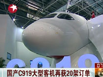 國產(chǎn)C919大型客機(jī)再獲20架訂單
