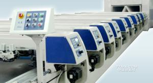 該機在導(dǎo)帶和刮刀的驅(qū)動定位上,全面的采用了現(xiàn)代高精度的計算機CNC數(shù)控伺服定位技術(shù),導(dǎo)帶主傳動系統(tǒng)采用雙伺服電機驅(qū)動。由兩臺進口大功率、全數(shù)字、高精度交流伺服電動機通過兩套歐洲原裝進口的高精度低背隙的減速機,在高精度CNC數(shù)控系統(tǒng)的控制下對導(dǎo)帶實施精密拖動,該交流伺服電動機配有13萬線/轉(zhuǎn)的光電編碼器,導(dǎo)帶精度可達±0.1mm。