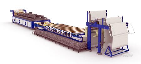梭織布單層網(wǎng)三層織物引布路線,織物借助于烘房導(dǎo)帶和熱風(fēng)氣墊完成烘燥。u