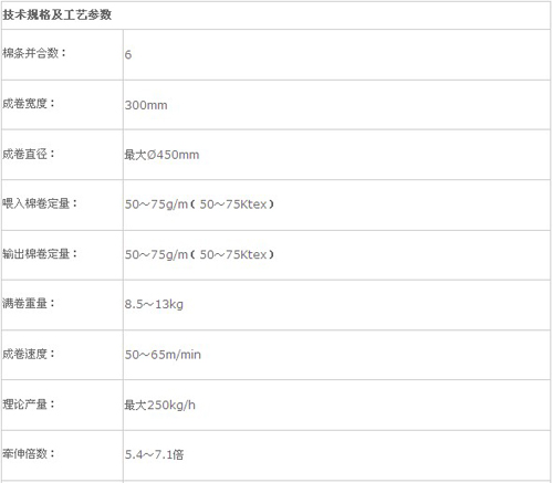 本機(jī)是將經(jīng)過條卷機(jī)并合后的棉卷再牽伸并合,提高纖維的伸直度和平行度,供下道工序精梳機(jī)使用。