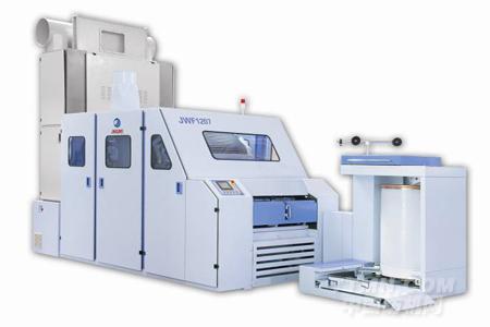 JWF1207梳棉機(jī)是青島宏大以高產(chǎn)高效為理念潛心研發(fā)的最新一代高產(chǎn)梳棉機(jī),產(chǎn)量更高、性能更加穩(wěn)定。這得益于高新科技材料的廣泛應(yīng)用和梳棉機(jī)核心部位——梳理區(qū)的重大調(diào)整。產(chǎn)量可達(dá)100公斤/小時(shí),出條速度達(dá)到300米/分。隨著配臺(tái)數(shù)的減少,在用地、用工、能耗方面大大節(jié)約投資成本。