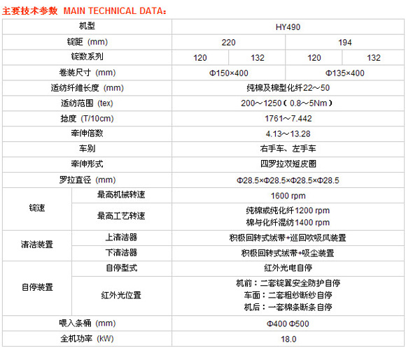 HY490型棉紡電腦粗紗機由宏源公司在紡紗領域多年來積累的強有力的技術訣竅支持下開發(fā)的。最高機械速度1600rpm ,具有競爭力的投資成本,優(yōu)異成紗質(zhì)量。專為客戶在選用宏源粗紗機提供了更多的選擇??梢宰畹偷耐顿Y實現(xiàn)對老機型進行電腦化控制改造。