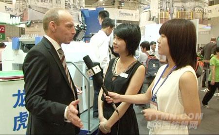 特呂茨勒(上海)公司總經(jīng)理施博安正在接受中國紡機網(wǎng)TTMN采訪