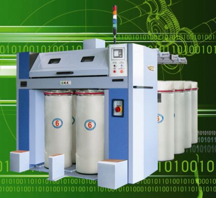傳動采用全封閉油浴齒輪箱,重量變換齒輪裝于車頭箱內(nèi),搖動手柄即可調(diào)整重量變換和牽伸倍數(shù),方便可靠。前壓輥增設多檔變位裝置,適紡多種纖維。搖架加壓采用新型結構,彈簧選料合理,壓力不需要調(diào)節(jié),提高了加壓的穩(wěn)定性和可靠性。采用全新結構的導條架設計,雙臂支撐傳動平穩(wěn)。本機為適應不同紡紗需要,可對各處張力進行調(diào)節(jié);電氣采用PLC機控制提高控制系統(tǒng)的可靠性,選用變頻調(diào)速及觸摸屏技術,實現(xiàn)人機對話,操作更方便。配有穩(wěn)定可靠的自動換筒裝置,設有定向停車裝置、缺預備筒檢測和送筒到位檢測裝置,大大降低了勞動強度。