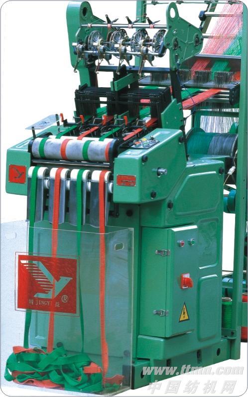 JYF系列雙卷取(加重)織帶機,由2條織帶至10條織帶,從極小的寬度至最寬210mm,20多個品種。可采用各種紗線原料,適合各種輕至中型帶類,如文胸帶、肩帶、緞帶、松緊帶、鞋帶、包邊帶、拉鏈帶、箱包帶……等等。