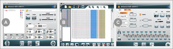 Dobbytronic是布機(jī)的控制軟件, 也提供使用者圖形化的操作接口,用于設(shè)定并顯示機(jī)臺(tái)所有必要的信息(A)。