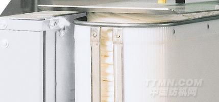 特呂茨勒將可靠的4上3下牽伸系統(tǒng)做進(jìn)一步的改進(jìn),增加壓力棒。第四根皮輥確保牽伸系統(tǒng)出條端的條子無位移偏差。主牽伸區(qū)的可調(diào)節(jié)壓力棒確保即使短纖維也被控制和引導(dǎo)。與之前的并條機(jī)相比,有效牽伸寬度增加了15mm,可改善加工高蓬松度合成纖維時(shí)的運(yùn)行性能。