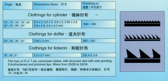 適用于棉紡、人造纖維、合成纖維梳毛機金屬針布
