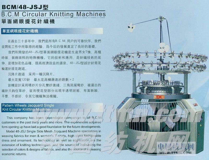 BCM/48-JSJ型單面網(wǎng)眼提花針織機(jī) -- 臺灣榕煙臺關(guān)系企業(yè)