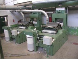 該機(jī)適用于天然纖維或化學(xué)纖維的混紡梳理。該成套設(shè)備的主要作用是將經(jīng)過和毛機(jī)和毛加油的羊絨、天絲、大豆蛋白纖維等天然或化學(xué)纖維、人造纖維,進(jìn)行細(xì)致地開松、梳理、混和、除雜,聚合成一定克重的生條,供后道工序使用。