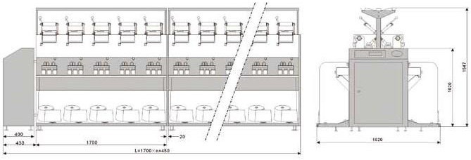 本產(chǎn)品可把2~4股棉、毛、及混紡紗線合并卷繞成并紗筒子,適用于倍捻機等后道工序的加工。【 產(chǎn)品特點 】>>實行機電一體化設(shè)計制造,結(jié)構(gòu)簡練,易安裝調(diào)整,操作簡單方便, 并具有中央電腦程序設(shè)置,單錠電機、電子定長、滿筒自停、電子 防疊、變頻調(diào)速、單錠控制、斷紗自停、單錠清零、數(shù)據(jù)記憶、產(chǎn)量 統(tǒng)計等功能>>可選購裝置:隔紗板、空器捻接器、清潔裝置、導(dǎo)輪配置。【 技術(shù)參數(shù) 】