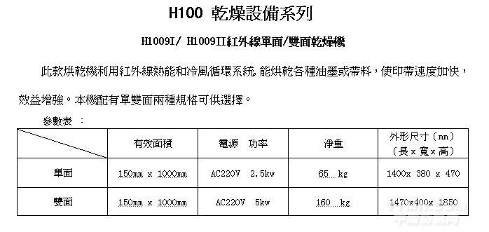 H1009Ⅱ 紅外線雙面乾燥機