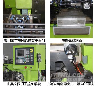 采用國(guó)產(chǎn)CNC控制系統(tǒng)及伺服電機(jī),數(shù)控插補(bǔ)砂輪修整;可磨曲線膠輥,砂輪主軸三瓦動(dòng)壓結(jié)構(gòu);砂輪快進(jìn)快退,進(jìn)刀時(shí)可先快后慢,達(dá)到先粗磨后精磨,該機(jī)配置水平式平移上下料機(jī)構(gòu),一次上料20-40根,實(shí)現(xiàn)自動(dòng)化作業(yè),能滿足大批量生產(chǎn)的要求。工件夾持為一頭筒夾,一頭凹頂尖。