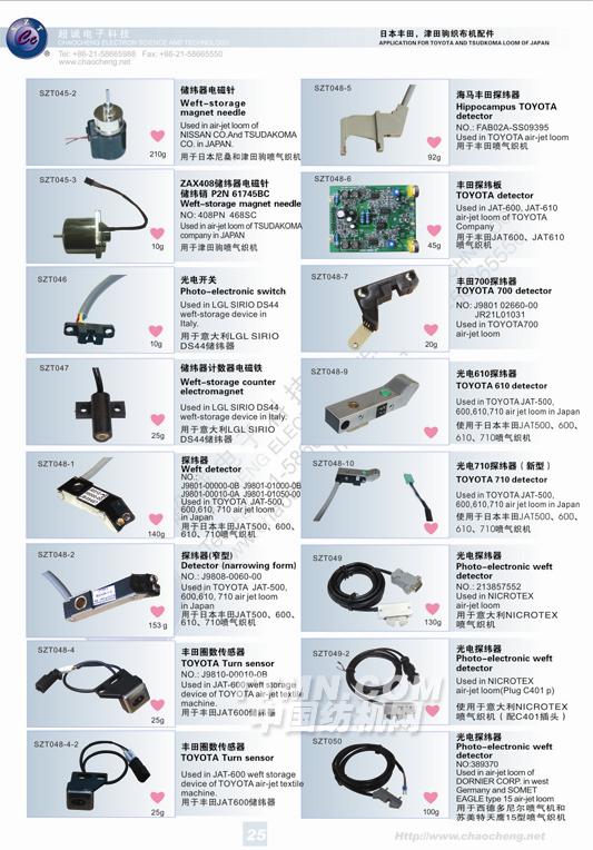 超誠(chéng)電子科技有限公司在產(chǎn)品開發(fā)領(lǐng)域:成功研發(fā)出提花機(jī)電磁鐵、抬緯電磁鐵、電子多臂機(jī)電磁鐵、儲(chǔ)緯器電磁針、接近開關(guān)、緯紗傳感器、光電開關(guān)、光電探緯器、固態(tài)繼電器等產(chǎn)品,部分產(chǎn)品獲得了國(guó)際UL認(rèn)證、CE認(rèn)證等,受到了國(guó)部委的多次嘉獎(jiǎng)。特別是本公司的高頻率提花機(jī)電磁鐵(SZT-003)、電子多臂機(jī)電磁棒(SZT-001-20)、節(jié)能型提花機(jī)組件(M5)、新型氣閥電磁鐵(TAU-2536),成為了國(guó)家商新技術(shù)產(chǎn)品,并通過了上海市高新技術(shù)成果轉(zhuǎn)化,得到了國(guó)家重點(diǎn)產(chǎn)品保護(hù),本公司也被確認(rèn)為全國(guó)質(zhì)量、信譽(yù)雙保障示范企業(yè),中國(guó)質(zhì)量誠(chéng)信委員會(huì)AAA級(jí)質(zhì)量誠(chéng)信會(huì)員,中國(guó)質(zhì)量誠(chéng)信促進(jìn)會(huì)質(zhì)量誠(chéng)信消費(fèi)者(用戶)信得過單位。