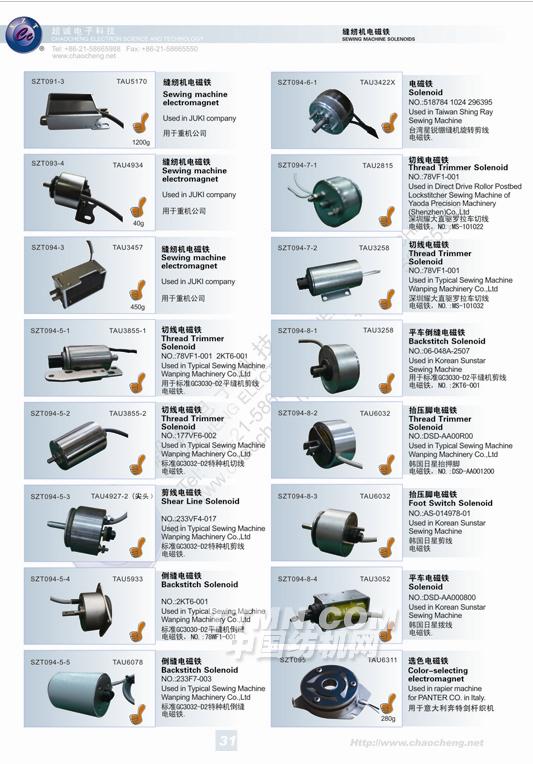超誠電子科技有限公司在產(chǎn)品開發(fā)領(lǐng)域:成功研發(fā)出提花機電磁鐵、抬緯電磁鐵、電子多臂機電磁鐵、儲緯器電磁針、接近開關(guān)、緯紗傳感器、光電開關(guān)、光電探緯器、固態(tài)繼電器等產(chǎn)品,部分產(chǎn)品獲得了國際UL認證、CE認證等,受到了國部委的多次嘉獎。特別是本公司的高頻率提花機電磁鐵(SZT-003)、電子多臂機電磁棒(SZT-001-20)、節(jié)能型提花機組件(M5)、新型氣閥電磁鐵(TAU-2536),成為了國家商新技術(shù)產(chǎn)品,并通過了上海市高新技術(shù)成果轉(zhuǎn)化,得到了國家重點產(chǎn)品保護,本公司也被確認為全國質(zhì)量、信譽雙保障示范企業(yè),中國質(zhì)量誠信委員會AAA級質(zhì)量誠信會員,中國質(zhì)量誠信促進會質(zhì)量誠信消費者(用戶)信得過單位。