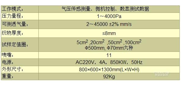 用于機(jī)織物、針織物、非織造布及工業(yè)濾布等的透氣性能。