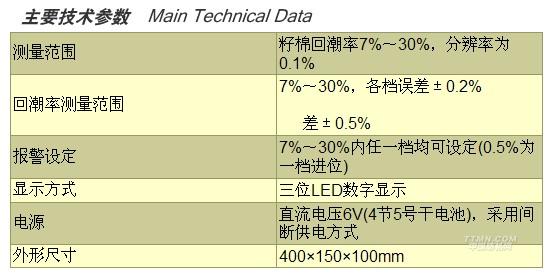 BD-M5G型微電腦籽棉回潮率探測儀應(yīng)用微電腦技術(shù),實現(xiàn)籽棉回潮率數(shù)字顯示,顯示分辨率高,回潮率測量范圍大,適用于南、北方產(chǎn)棉區(qū)。探頭和電路一體化設(shè)計,結(jié)構(gòu)精巧,可靠性好,