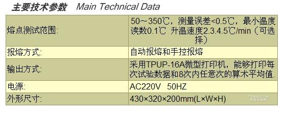 用于測試化纖、聚酯切片、藥粉等物體的熔點(diǎn)(深色不透光物體除外),通過儀器檢測,分析物體在加熱過程中的升溫曲線和光量變化曲線,自動判斷確定熔點(diǎn),也可通過顯微鏡目測判斷確定熔點(diǎn)。