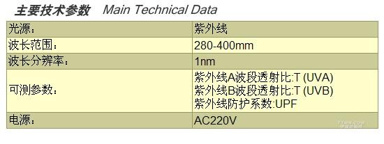 用于測定紡織品紫外線透過率和防紫外線性能及紫外線防護(hù)系數(shù)。