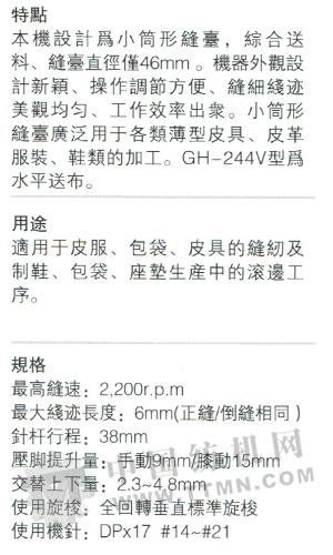 GH-244 GH-244V簡型單針綜合送布縫紉機