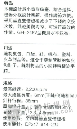 GH-246 GH-246V 簡(jiǎn)型單針平縫綜合送布縫紉機(jī)