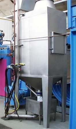 水幕除塵過濾器放置于燒毛機之后,與后刷毛配合使用,用于清洗從后刷毛箱吸入的燒毛灰并排除多余的空氣。