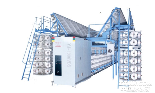 低彈性能的牽伸變形絲(DTY),加工時(shí)將s捻和z捻的雙絲合股成無(wú)剩余紐矩絲。相對(duì)于單錠合股設(shè)備,在相同速度下,本機(jī)的產(chǎn)量翻倍。