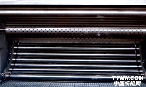 箱內有適宜的布匹預蒸區(qū),采用單穿布方式受到積極導布,導輥采用分點間隔傳動,張力輥調節(jié)同步,變頻控制,實行輥筒牽引織物,確保了織物運行無褶皺。