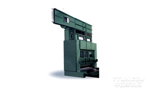 ●本機是非織造布梳理機的喂入裝置,纖維經(jīng)前道開清工序處理后,由輸棉風機送入本機上部的儲存箱,形成一定密度的纖維組織,然后經(jīng)一對給棉羅拉喂入下方的開松輥進行開松,將纖維送到下箱,并在均勻氣壓和振動板作用下,形成均勻纖維層.由一對輸出羅拉送出,通過輸送帶或自調(diào)勻整裝置喂入梳理機。