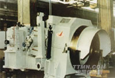該圖是使用最廣泛的高速線材吐絲機、它與前面配套的夾送輥配合,完成將線材繞成盤園的工作。