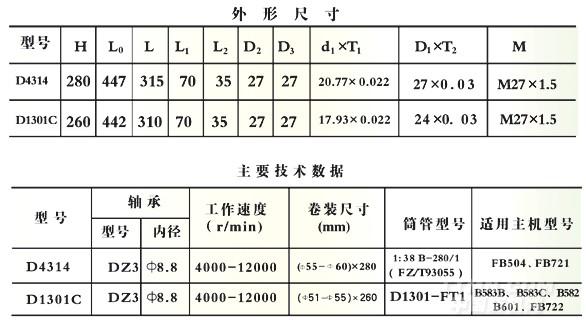 D1301C、D4314系列毛紡錠子