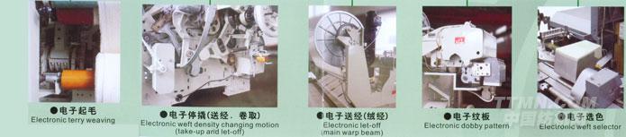 該機(jī)型主要用于織造面巾、茶巾、方巾、浴巾等螺旋緞檔或小提花緞檔毛巾織物,尤其適用于織厚重毛巾等特殊品種。