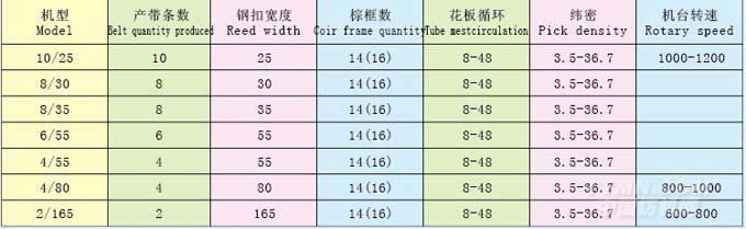 用 途: 用于生產各種PP帶,棉帶,安全帶,胸圍帶,格子帶,松緊帶等。 特點: 織帶寬度從極小寬度3毫米-230毫米,零件精密經久耐用,機身加寬,調整空間大;自動循環(huán)給油裝置,高科技電器控制,安全簡易,敏感度高,使織物質優(yōu)。 特殊裝置: 三滾筒自動送膠,雙滾輪加重,雙緯雙鉤裝置。