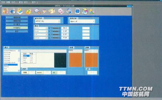 分光配色軟件通過分光測色儀對用戶使用的基色進行測試,來建立一個基色數(shù)據(jù)庫,在以后的使用中,只要檢測所需色樣,軟件即可給出此色樣的配方。此軟件可通過分光測色儀把客戶提供的標(biāo)準(zhǔn)色樣輸入到軟件當(dāng)中,軟件根據(jù)母液及糊料數(shù)據(jù)庫自動計算出此標(biāo)準(zhǔn)色的配方,用戶在選擇配方后保存并傳送到小樣調(diào)漿系統(tǒng),小樣調(diào)漿系統(tǒng)可根據(jù)此配方以及配方粘度自動完成母液以及糊料的加入。用戶可將完成的小樣配方重新展樣與標(biāo)準(zhǔn)配方在測色軟件中比對,如△E(色差值)達到客戶的標(biāo)準(zhǔn)測配方通過,可通過訂單直接傳送給調(diào)漿系統(tǒng),如△E(色差值)不能達到客戶的標(biāo)準(zhǔn),測色軟件可自動修色重新給出一個更精確配方,如此反復(fù)便可達到準(zhǔn)確配方。