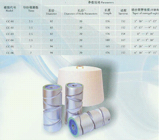 最佳槽形設(shè)計,槽筒具有優(yōu)良的導(dǎo)紗性能,適應(yīng)性廣。