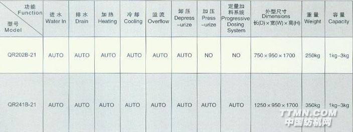 染缸和所有與染液接觸部分均采用優(yōu)質(zhì)高級不銹鋼制造。高效率新穎離心泵連接機(jī)械密封裝置,由變頻器(18.5KW以上可用),可無級控制流量。垂直式缸體,快鎖缸蓋帶平衡重錘裝置配氣缸開關(guān)。缸蓋電氣連鎖裝置(QR241C-75以上缸蓋由重錘平衡開關(guān))。自動控制換向的平板式液流換向器。獨特高效外置管殼式熱交換器。主缸自動加壓卸壓裝置(氣墊式)。循環(huán)液流冷凝器(全充滿式)。敞開式加料桶及定量注料。高精度感應(yīng)的壓差式傳感器控制液位(氣墊式)。先進(jìn)的微電腦程序控制器。