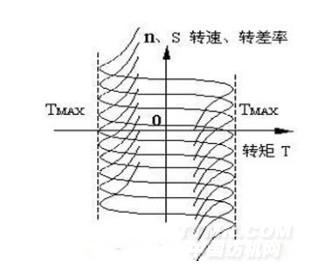 電機正轉(zhuǎn),電機的輸出轉(zhuǎn)矩通過減速機轉(zhuǎn)換后作用在皮帶機的驅(qū)動輪轂上,并與上層皮帶自重沿傳輸面重力分量作用在皮帶機驅(qū)動輪轂上的 力矩組合,電機工作在第一象限。當皮帶上煤后,煤的重量沿皮帶傳輸方向的分力也作用在驅(qū)動輪轂上,并使驅(qū)動力矩逐漸增大,當驅(qū)動力矩超過摩擦力力矩后,驅(qū)動輪轂的轉(zhuǎn)速將加速轉(zhuǎn)動,通過機械連接使得電機轉(zhuǎn)子也加速轉(zhuǎn)動,其速度超過電機的同步轉(zhuǎn)速;此時電機處于反轉(zhuǎn)再生狀態(tài),電機工作在第二象限。當電機反轉(zhuǎn)時,則工作在第二、四象限。