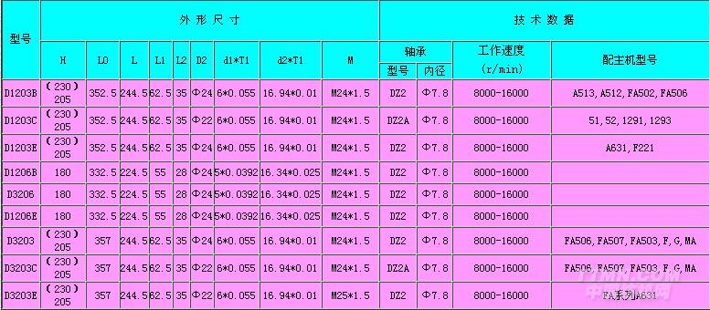 棉紡錠子外形尺寸圖表