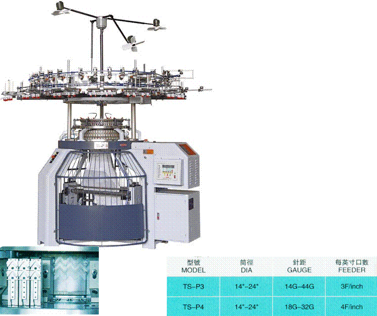 TS-P3:單面機 TS-MS:正包毛巾機 TS-PW3:三線衛(wèi)衣3