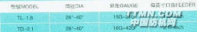 針筒總針數(shù)(參考表)