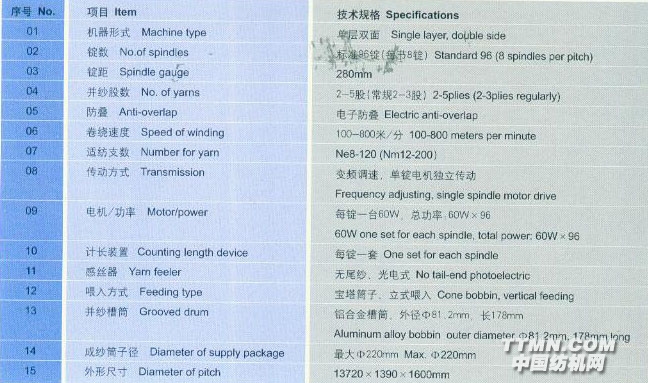 3、高品質(zhì)。特別設(shè)計的加捻區(qū)、高品質(zhì)倍捻錠子及紗線在線檢測系統(tǒng)使捻不勻率可確保在3%以內(nèi),特別適合于高品質(zhì)紗線的加工。