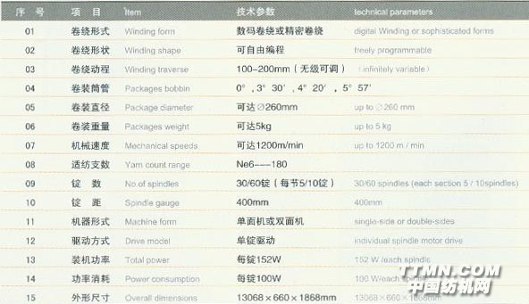 3、擁有專利技術(shù)的高速卷繞系統(tǒng),出紗速度高達150米/分。特別適合低支弱捻紗線的加工。