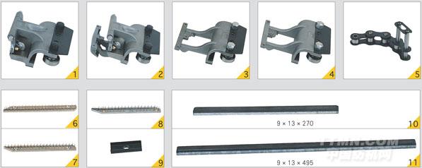 布針兩用鋏、單用鋏、單用針座、鏈條、針板、石墨條